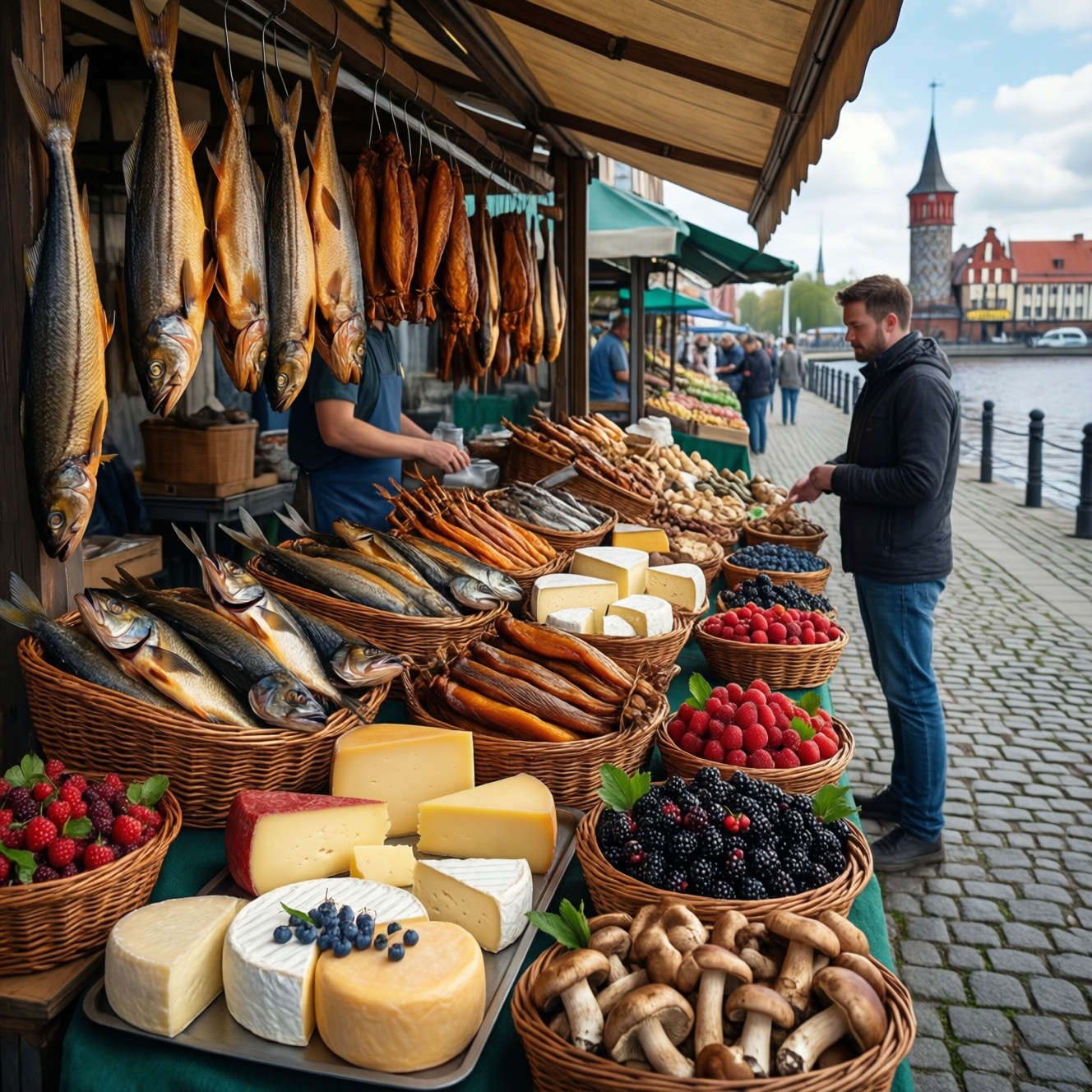 Гастрономический Калининград - это не витрина с марципаном, а смесь балтийских продуктов, бывшей прусской традиции и современной городской еды. Начните с рыбы и копчёностей, местных сыров, сезонных ягод и грибов, а искать всё это удобнее на рынках, в деликатесных лавках и в простых кафе у воды. Для ограниченного бюджета есть рабочие альтернативы.