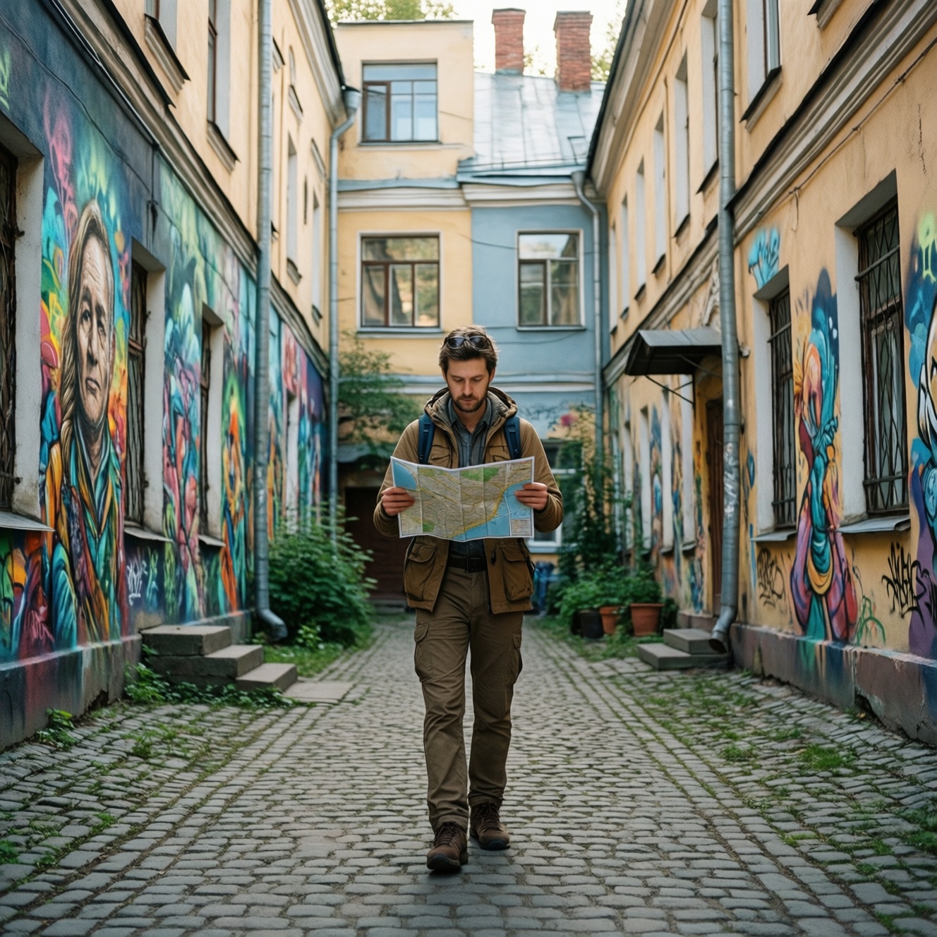 Начните с "легальных" обзоров с улицы. Ищите торцы домов, арки и проходные дворы - там чаще всего видны большие работы и понятные входы. Сделайте 2-3 фото-ориентира, чтобы быстро вернуться на улицу, если внутри станет некомфортно.